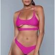 Two piece swimsuit with sporty style cami crop top and cheeky thong bottom