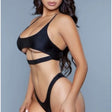 Two piece swimsuit with sporty style cami crop top and cheeky thong bottom
