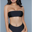 Two piece swimsuit with sporty style cami crop top and cheeky thong bottom