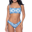 A supportive and romantic silhouette in a charming eyelet print, this two-piece swimsuit features a cami bikini top with a back tie and ruffle shoulder straps. The matching bottom has side drawstrings, allowing you to wear it mid or high-waisted.