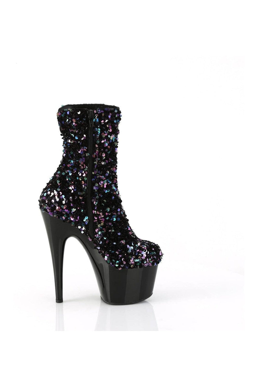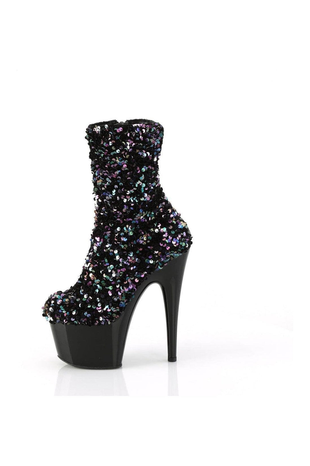7" Heel, 2 3/4" Platform Sequins Ankle Boot, Inside Zipper