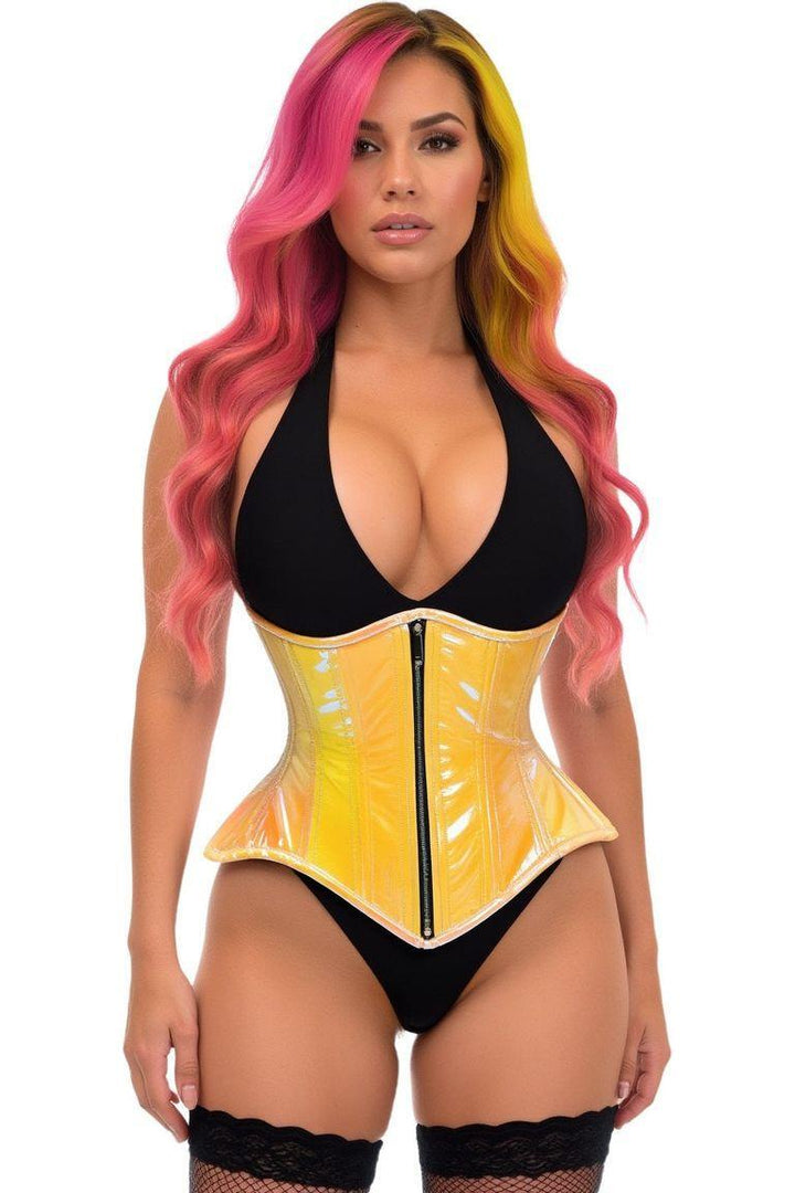 Top Drawer Yellow/Pink Holo Double Steel Boned Underbust Waist Cincher Corset