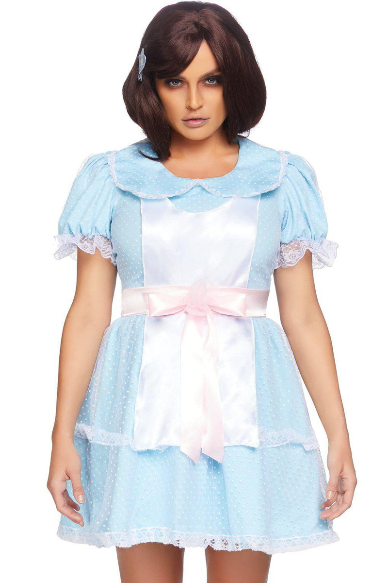 Leg Avenue 2 Piece Creepy Sibling, includes dotted babydoll dress with attached satin bow sash and flower hair clip.