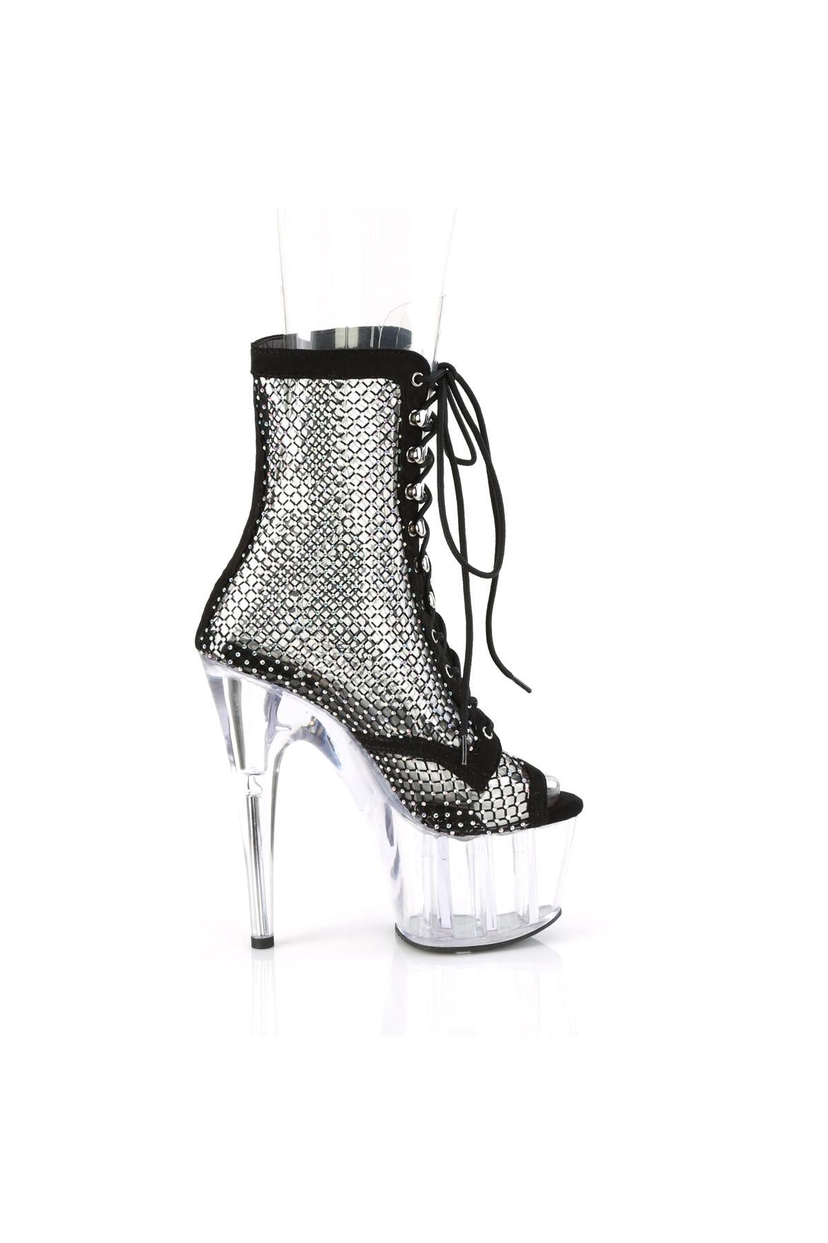 7" Heel, 2 3/4" Platform Peep Toe Lace-Up Ankle Boot, Side Zipper