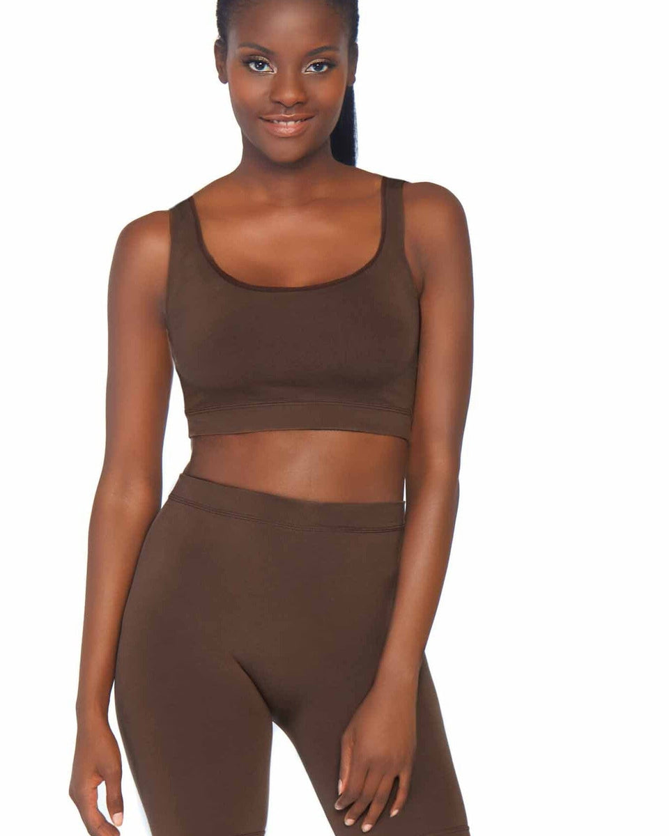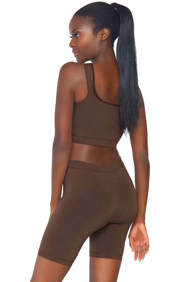 Leg Avenue 2 Piece Seamless Opaque Spandex Crop Tank And Bike Shorts in Brown