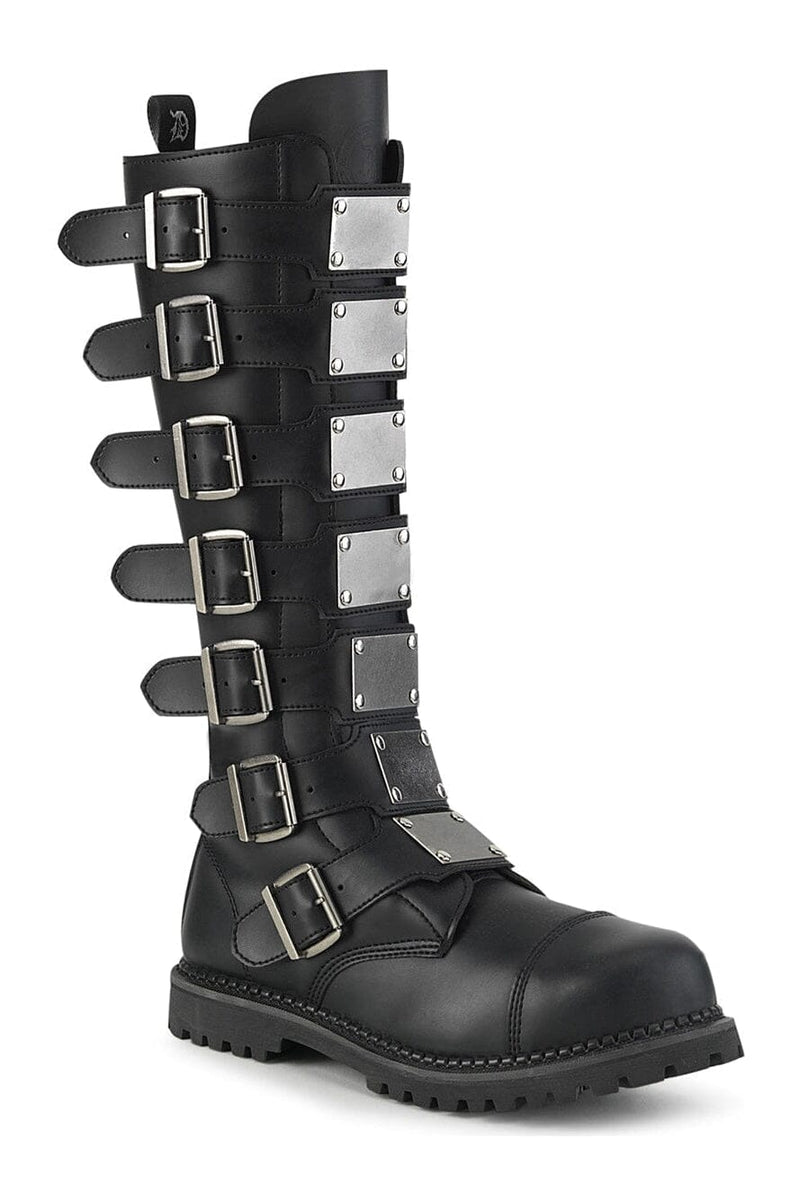 Demonia RIOT-21MP Black Vegan Leather Knee Boot in Black Vegan Leather