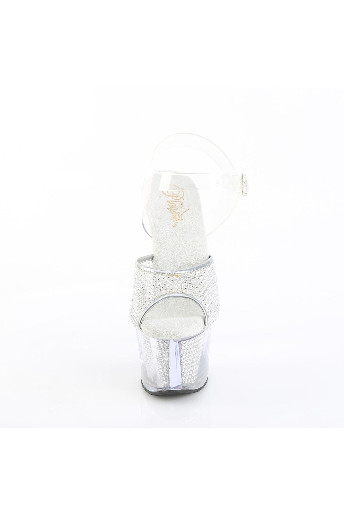 7" Heel, 2 3/4" Platform Rhinestone Net Ankle Strap Sandal