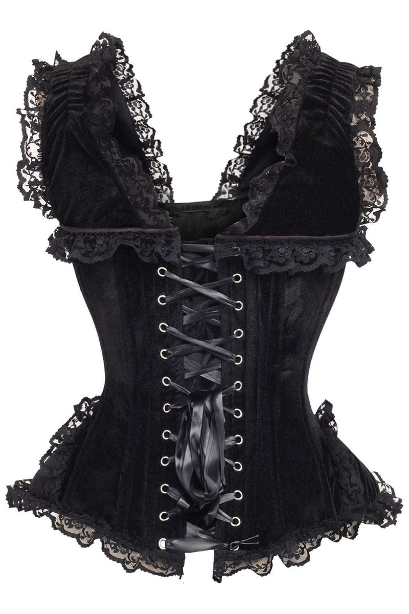 Top Drawer Black Velvet & Lace Steel Boned Corset w/Cap Sleeves